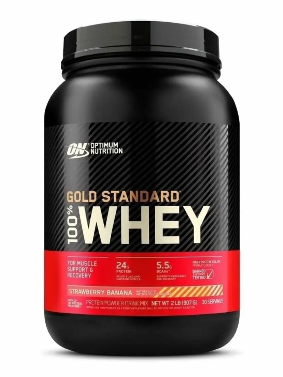 Купить ON 100% Whey Gold standard 2lb (Strawberry Banana), Протеин 907 грамм, Белковый коктейль, (Клубника-Банан)
