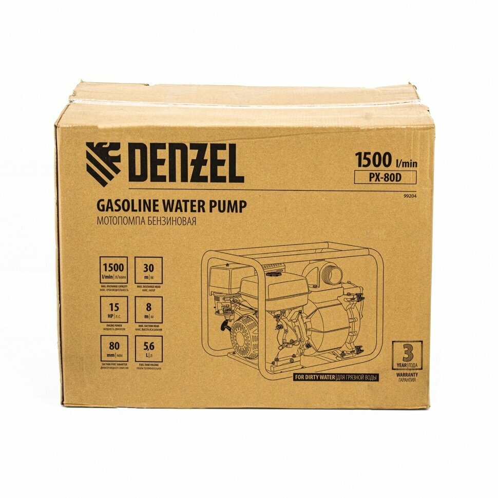 Бензиновая мотопомпа для грязной воды DENZEL PX-80D 99204 интересное: