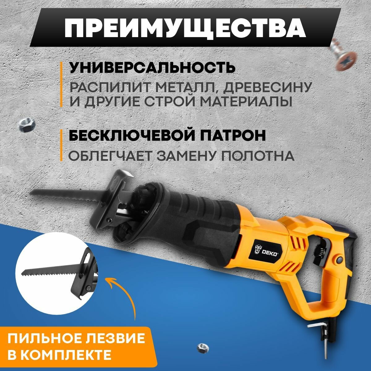 Пила сабельная сетевая DEKO DKRS1000 063-4194, 2800 об\мин, 1000Вт интересное: