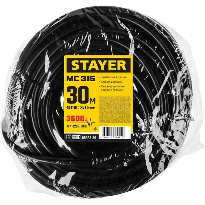 Удлинитель электрический силовой 30 м, 3500 Вт, 1 гнездо ПВС 3х1.5 STAYER интересное: