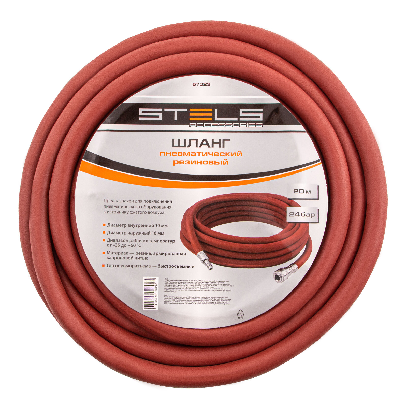 STELS 57023 Шланг пневматический резиновый, 10x16 мм, 24 бар, армированный, быстросъемное соединение, 20 м Ste STELS 57023 интересное: