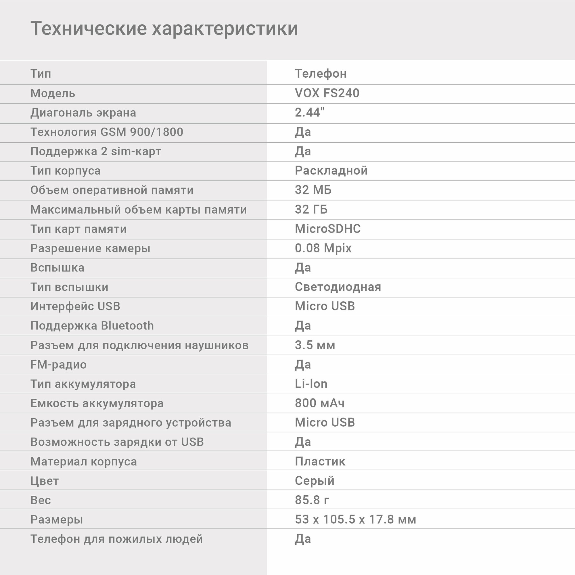 Телефон DIGMA VOX FS240, серый