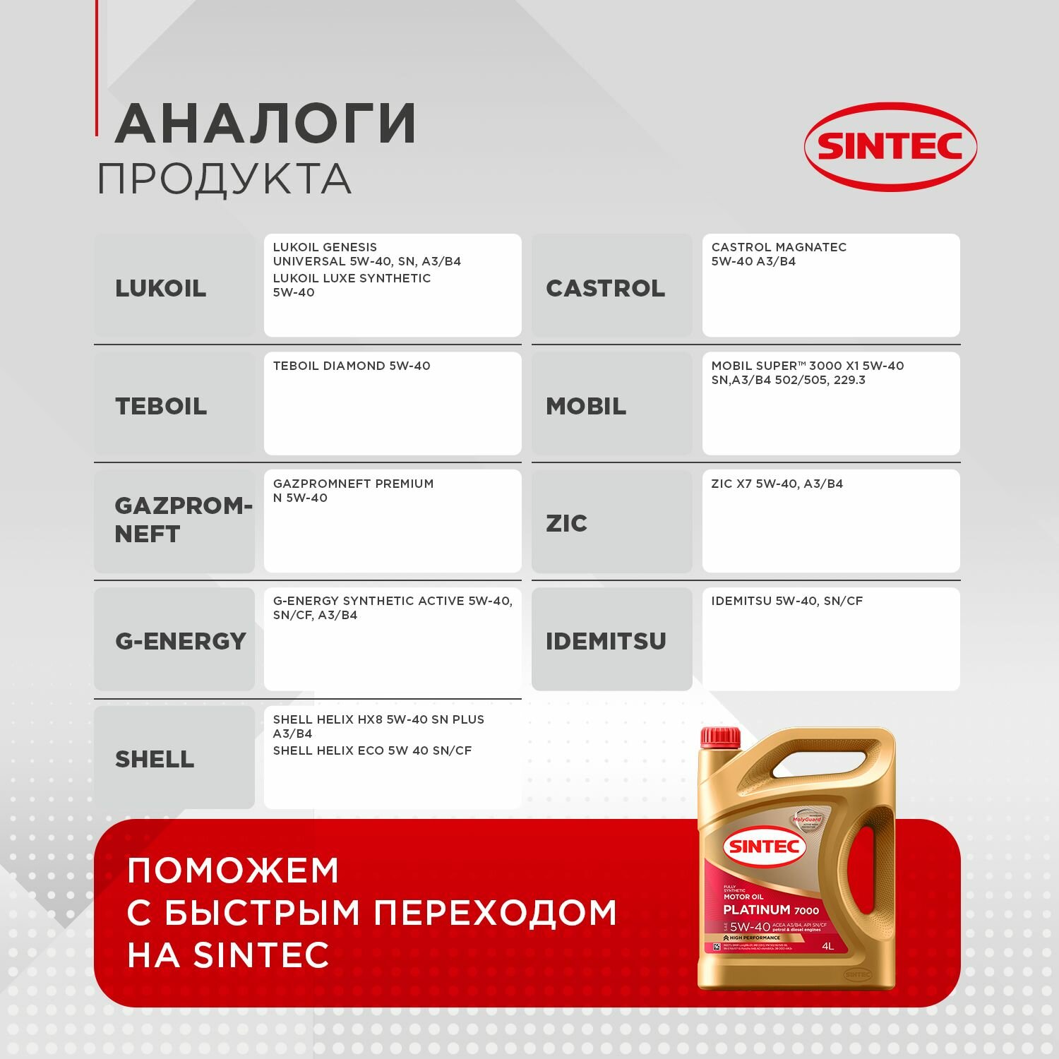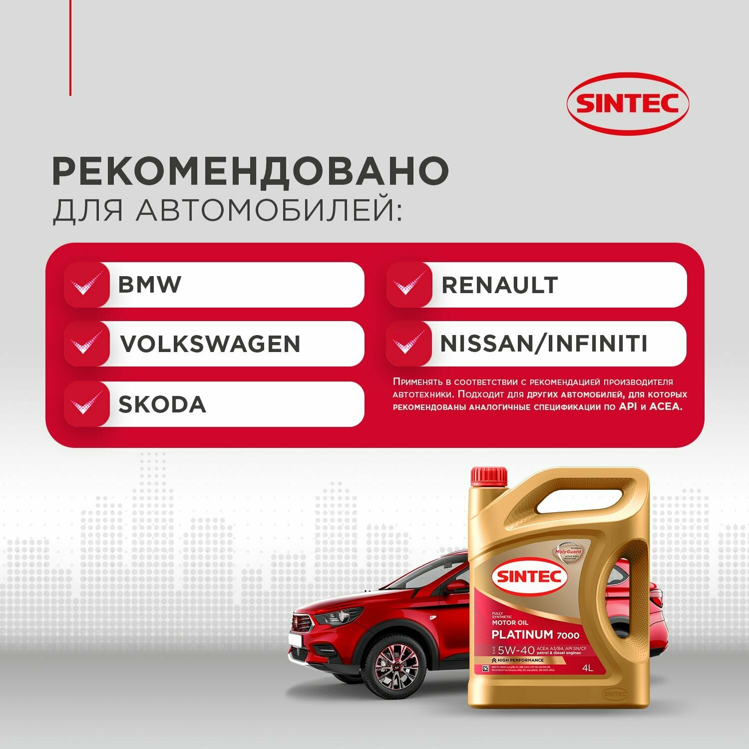 Синтетическое моторное масло SINTEC PLATINUM 5W-40, 1 л, 1 кг