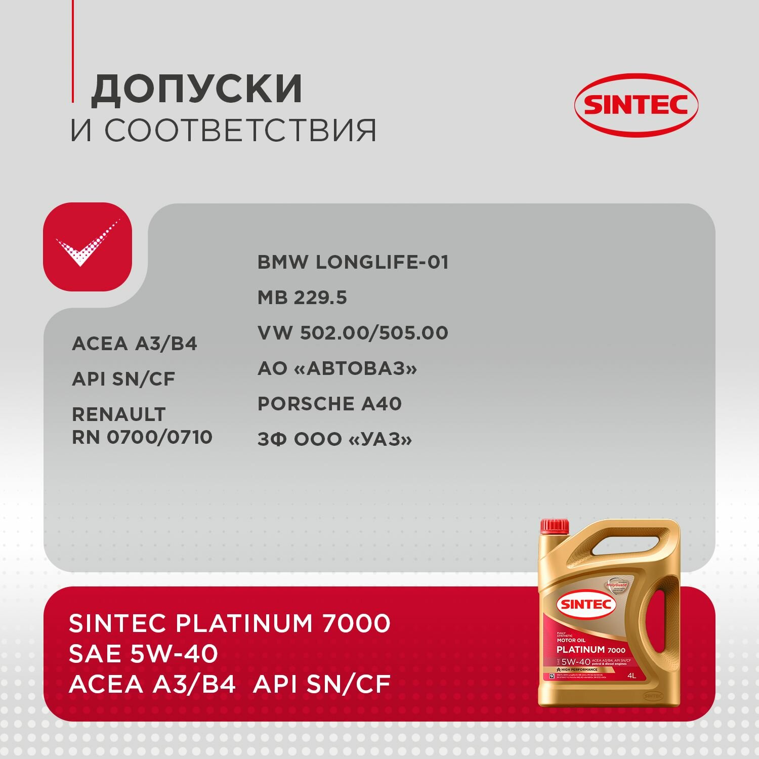 Моторное масло SINTEC Platinum 7000 5W-40 (1л) SIN-5W40-A3B4-1L