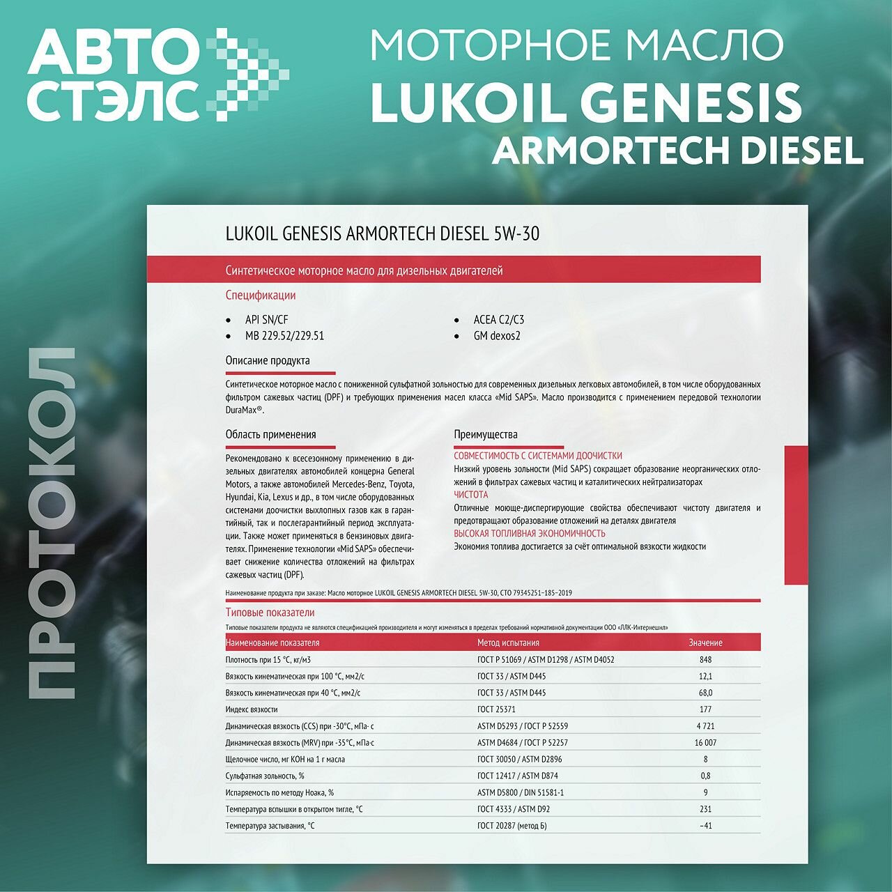 LUKOIL 3149864 ЛУКОЙЛ GENESIS ARMORTECH DIESEL 5W-30 LUKOIL масло