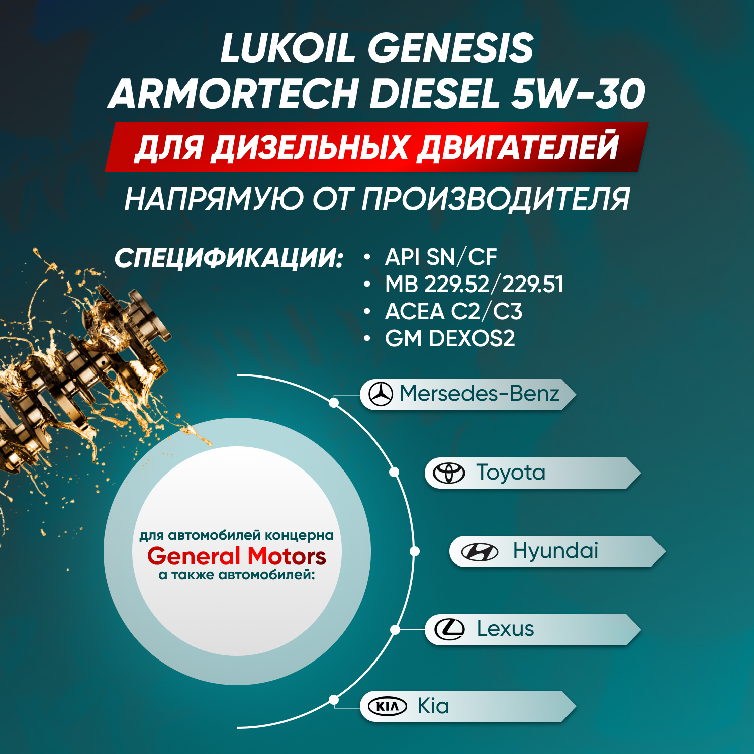 LUKOIL 5w-30 Для, На Дженезис/Генезис/Genesis Armortech Diesel 1л (Синт. Мотор. Масло)