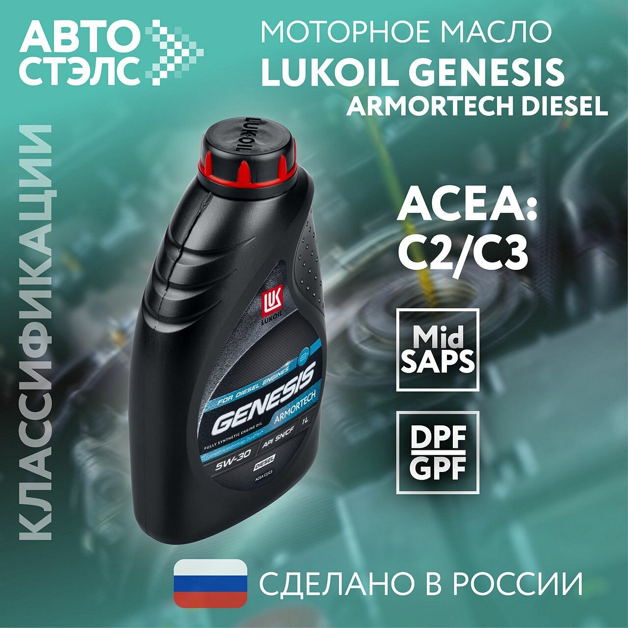 LUKOIL 3149148 Масо моторное синтетическое 5W-30 GENESIS ARMORTECH DIESEL API SN/CF, ACEA C2/C3, 1.0