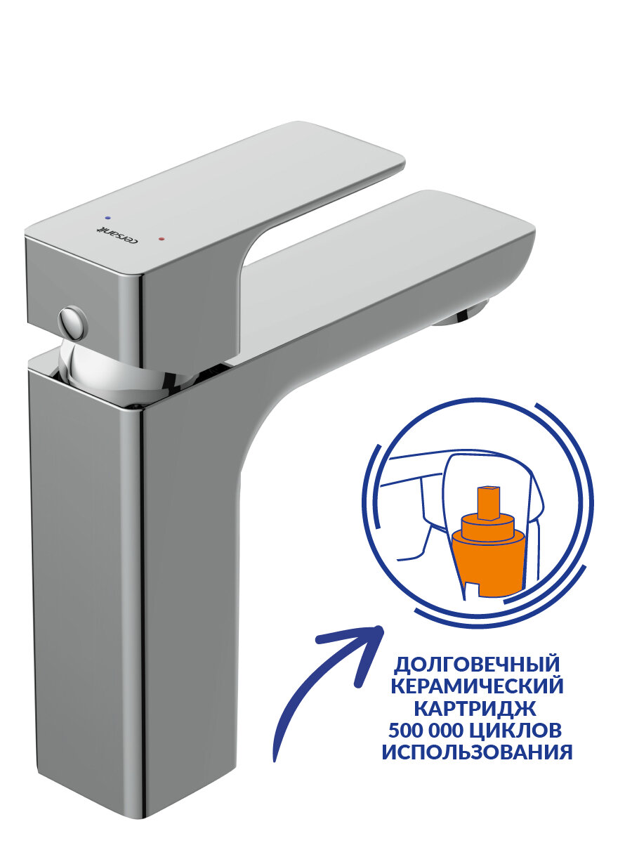 Смеситель Cersanit Geo 63039 для раковины с донным клапаном клик-клак