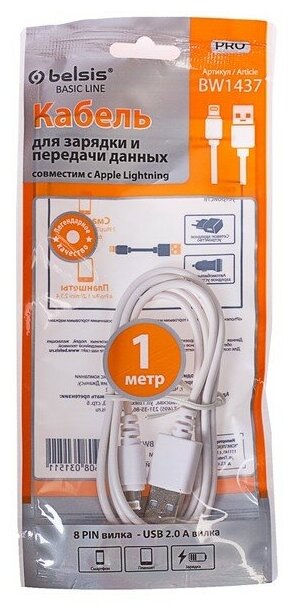 Кабель BELSIS Lighting - USB 2.0 1.8A 1 м BW1437/1.8