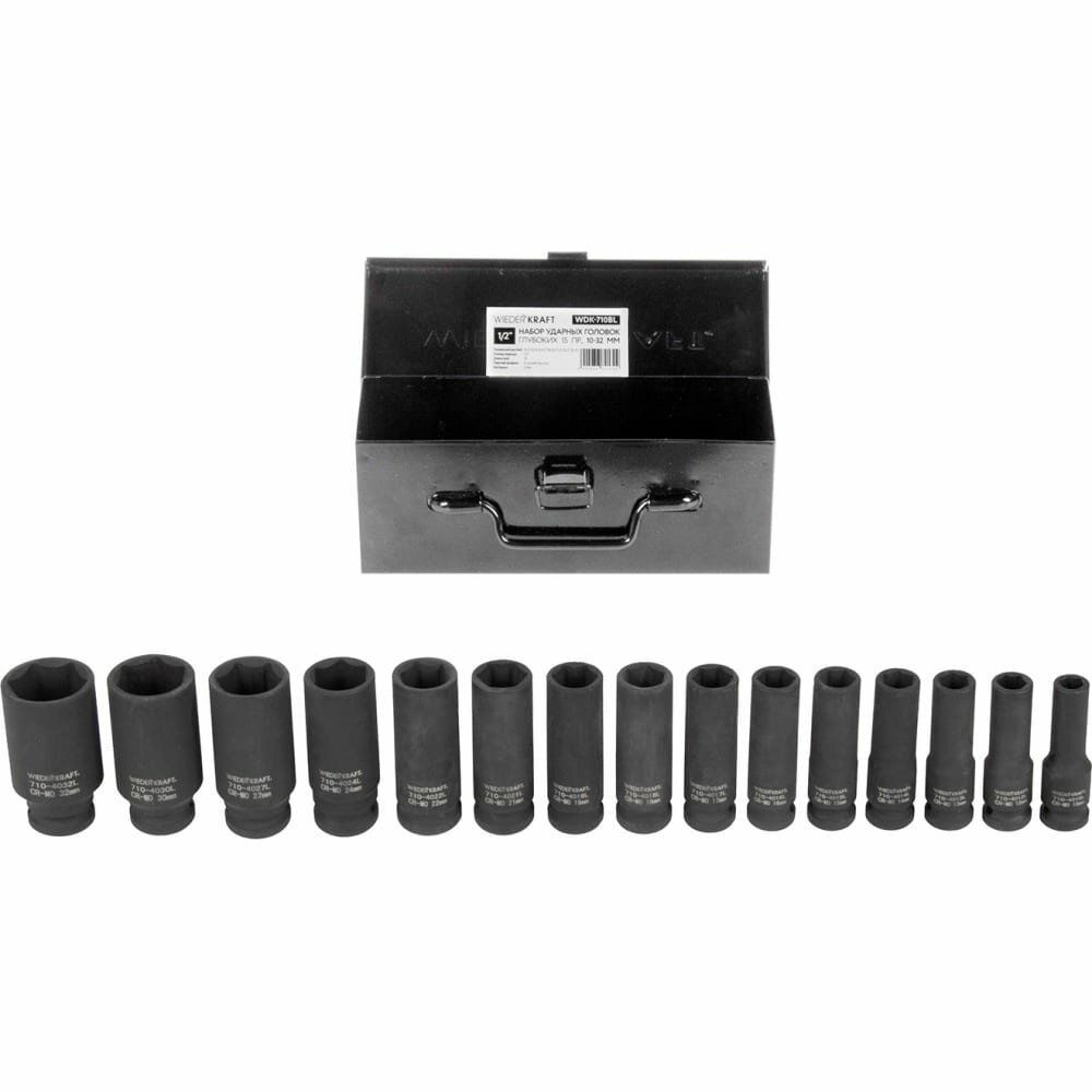Wiederkraft Набор ударных головок глубоких 1/2"" 15 предметов, 10-32 мм. Wdk-710bl