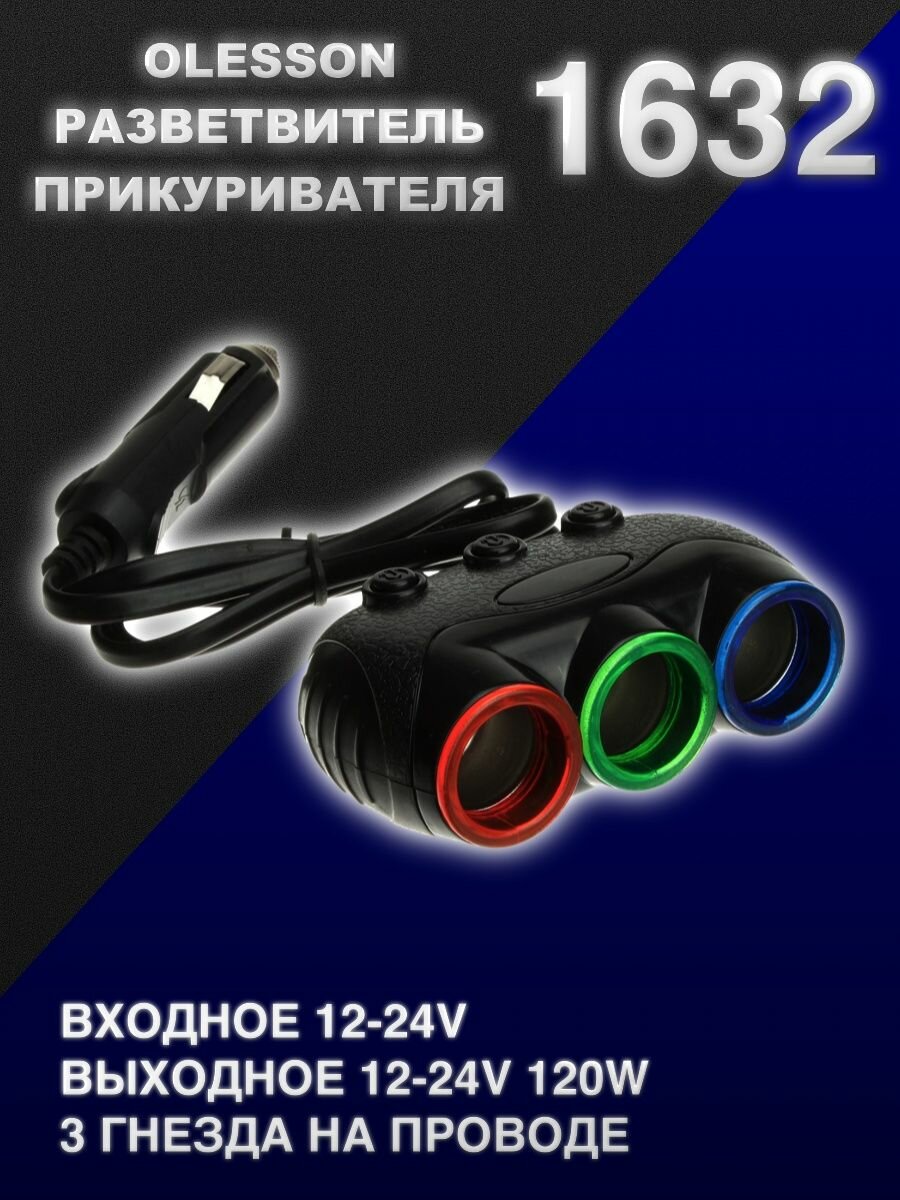 Разветвитель автоприкуривателя Olesson №1632 (3 розетки с выключателем) интересное: