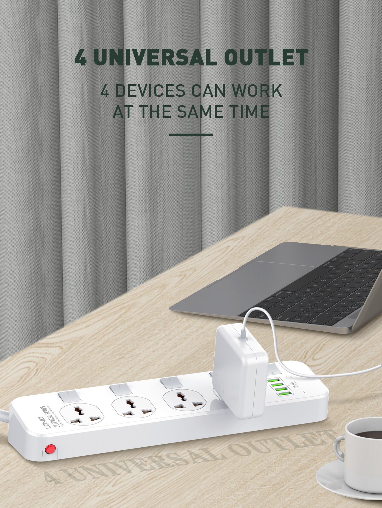 Купить Сетевой фильтр на 4 розетки + 4USB 3.4A 2M SC4408 LDNIO