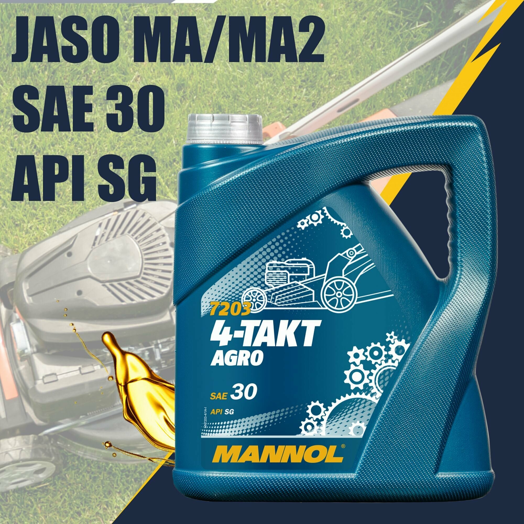 7203 Моторное масло для садовой техники MANNOL 4-TAKT AGRO SAE 30W, API SG, JASO MA/MA2, минеральное, 4 л., арт. 1441
