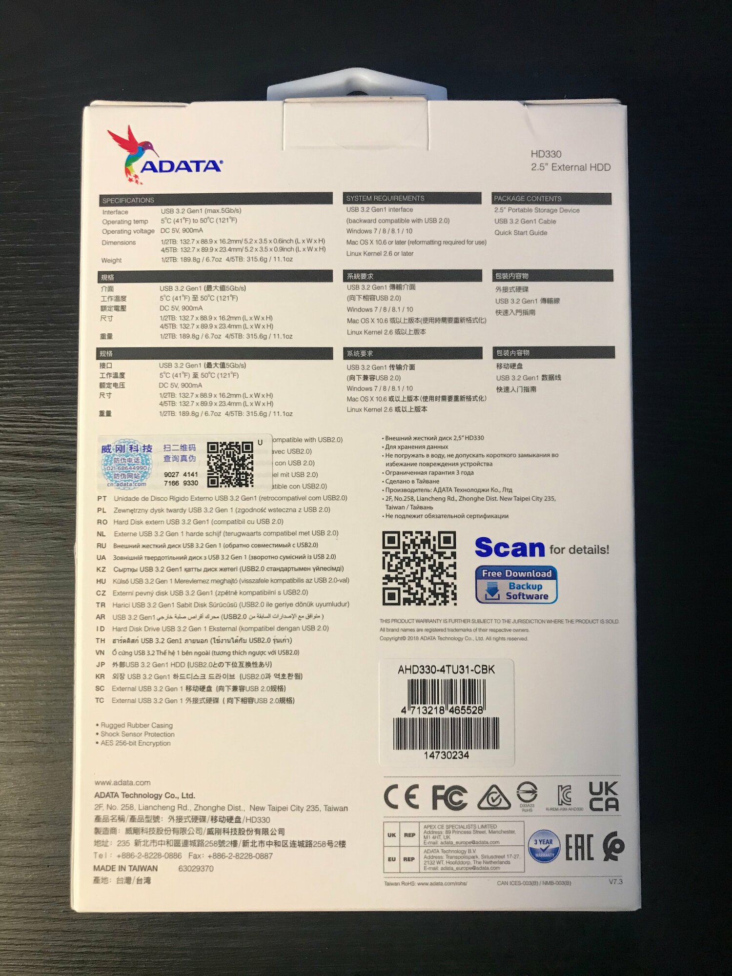 AHD330-1TU31-CBK, ADATA HD330, Внешний жесткий диск