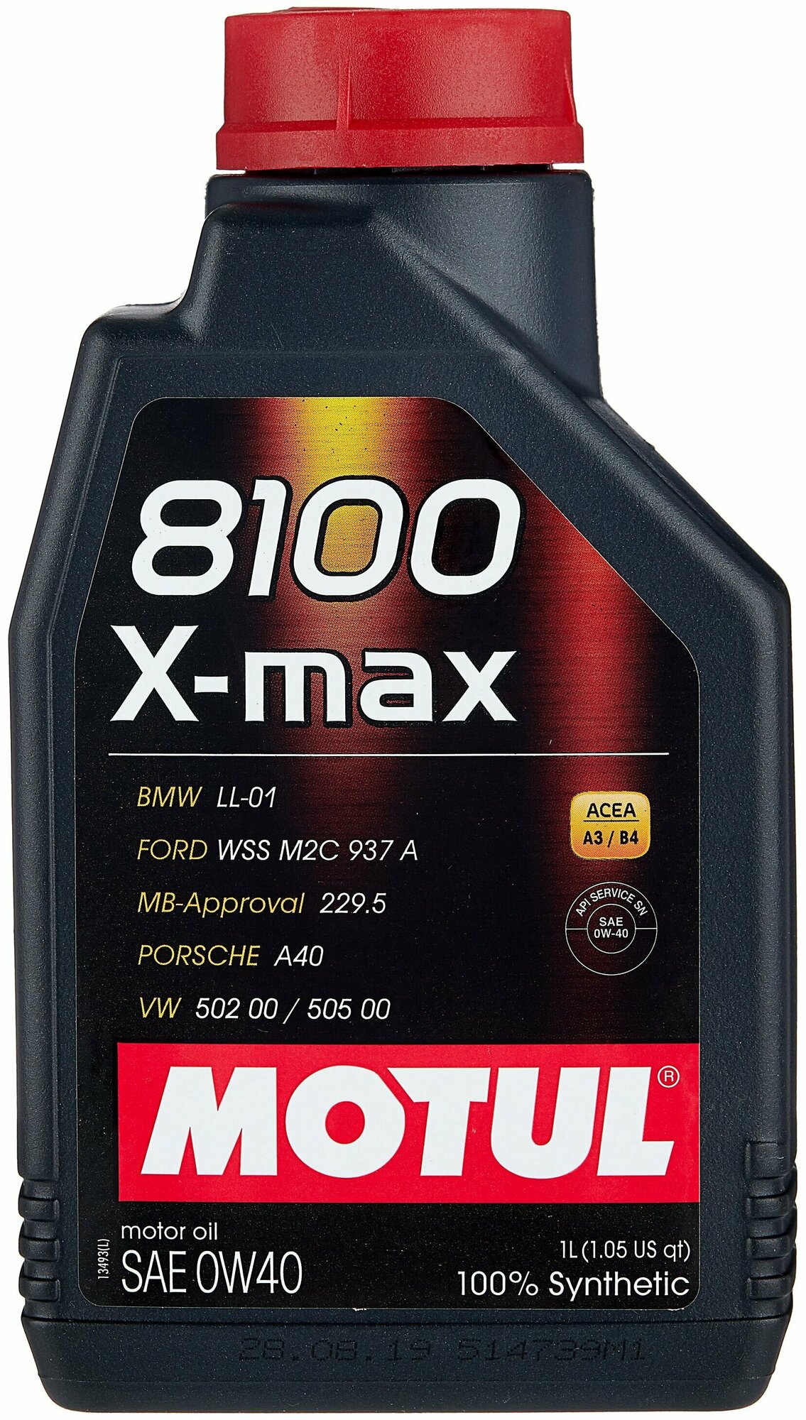 MOTUL 104533 MOTUL 0W40 8100 X-max 5L ACEA A3/B4,BMW LL-01, MB 229.5, VW 502-505 (французская республика)
