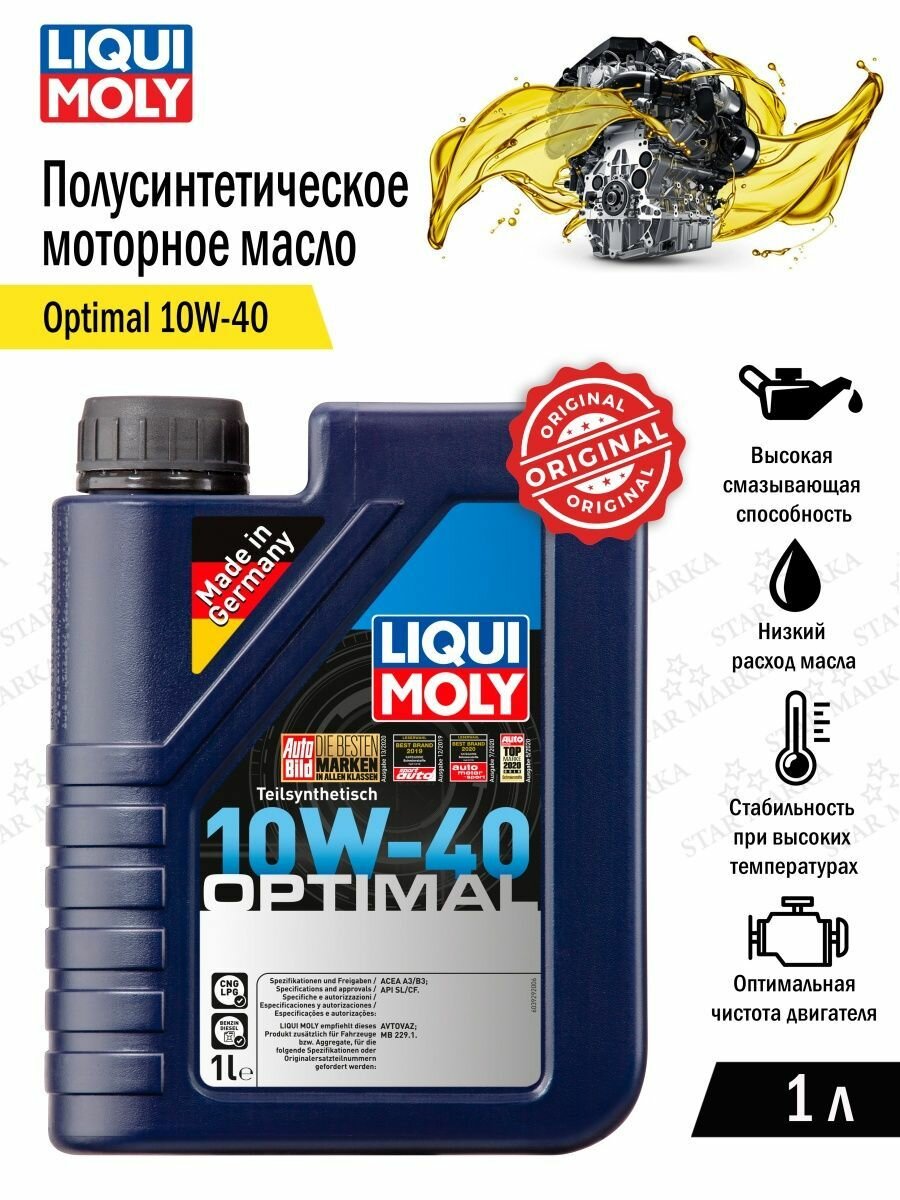 Синтетическое моторное масло LIQUI MOLY Optimal 10W-40, 1 л, 1 кг, 1 шт