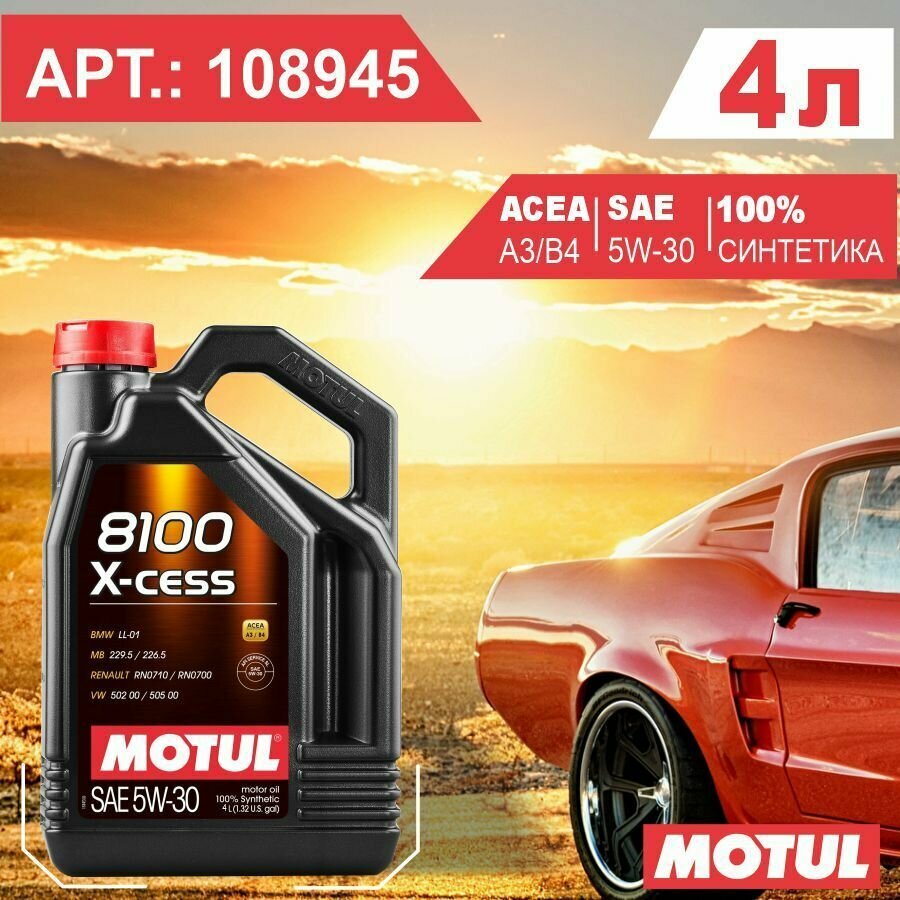 MOTUL Motul^108945 Масло Моторное Motul 8100 X-Cess A3/B3/B4 5w30 4 Л 108945