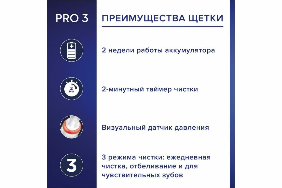 | Плюсы: | Хорошая упаковка без лишнего пластика. Я уже знаком с этой моделью щётки, чистит она замечательно. В ней нет никаких лишних функций наподобие Bluetooth, только необходимое, включая 3 режима чистки. Самый практичный вариант. |