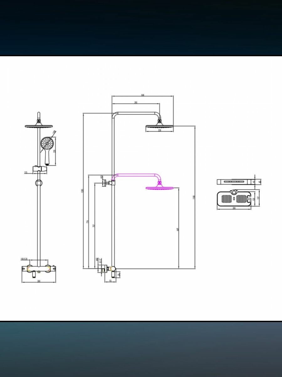 | Высота стойки для душа | 1285 мм |