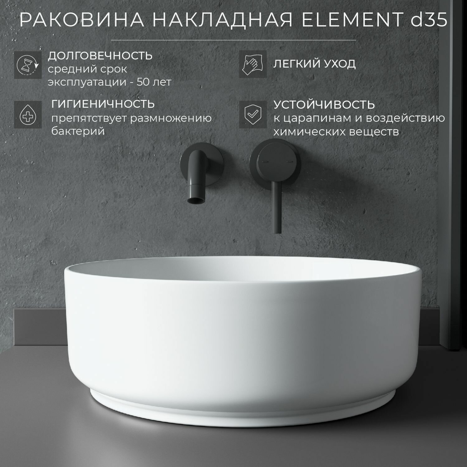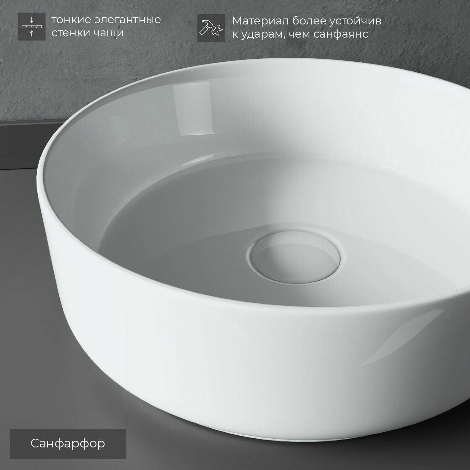 CN5001 Умывальник чаша накладная круглая Element 360*360*120мм