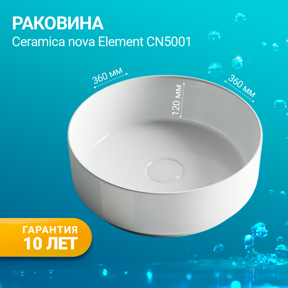 Ceramica Nova CN5001 Умывальник чаша накладная круглая Element 360*360*120мм