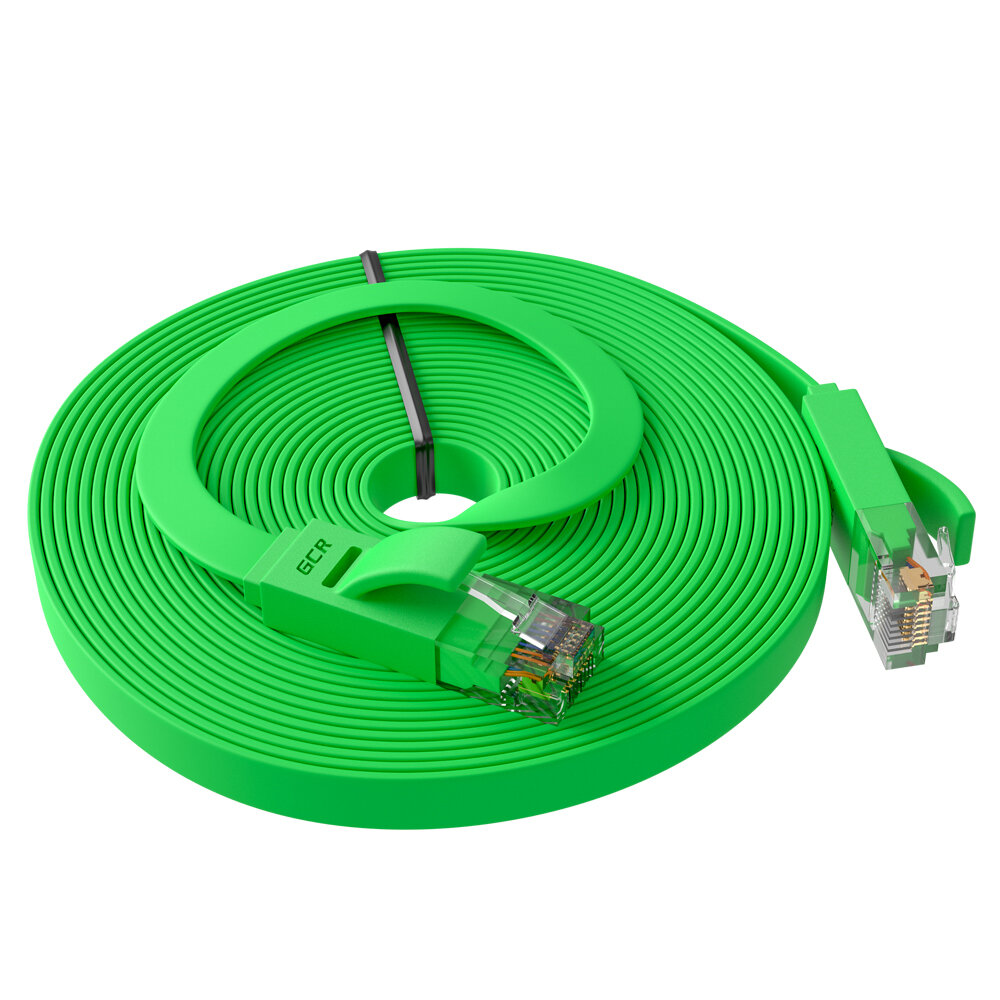 LAN кабель 15м GCR PROF плоский UTP cat.6 10 Гбит/с RJ45 LAN кабель для интернета медный контакты 24K GOLD (GCR-LNC62) зеленый