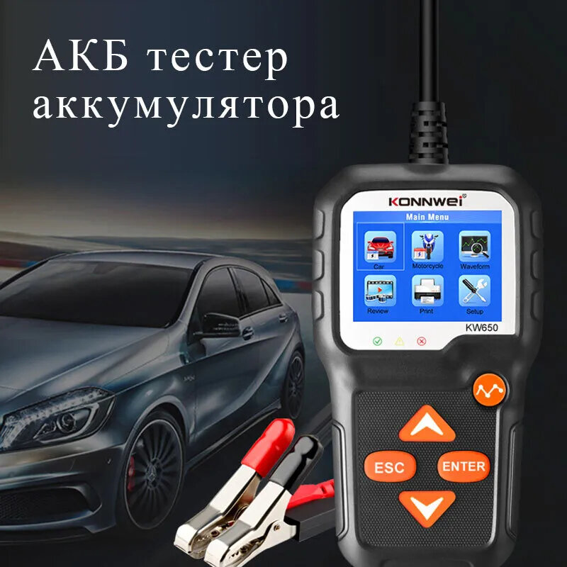 Купить Автомобильный тестер батарей АКБ автомобилей Konnwei KW650 6 В/12 В