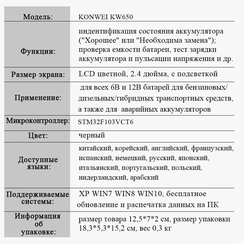 Автомобильный тестер батарей АКБ автомобилей Konnwei KW650 6 В/12 В интересное: