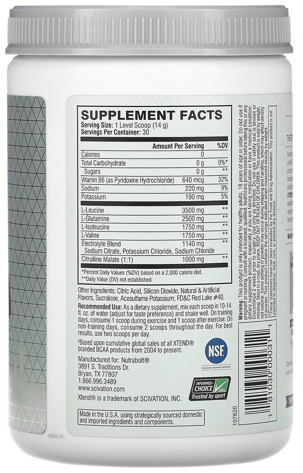 Аминокислотный комплекс BCAA Xtend с витамином B6 - Тропический гром 1220 гр "Внутри продукта находится пакет с влагоудерживающим агентом. Будьте внимательны!"