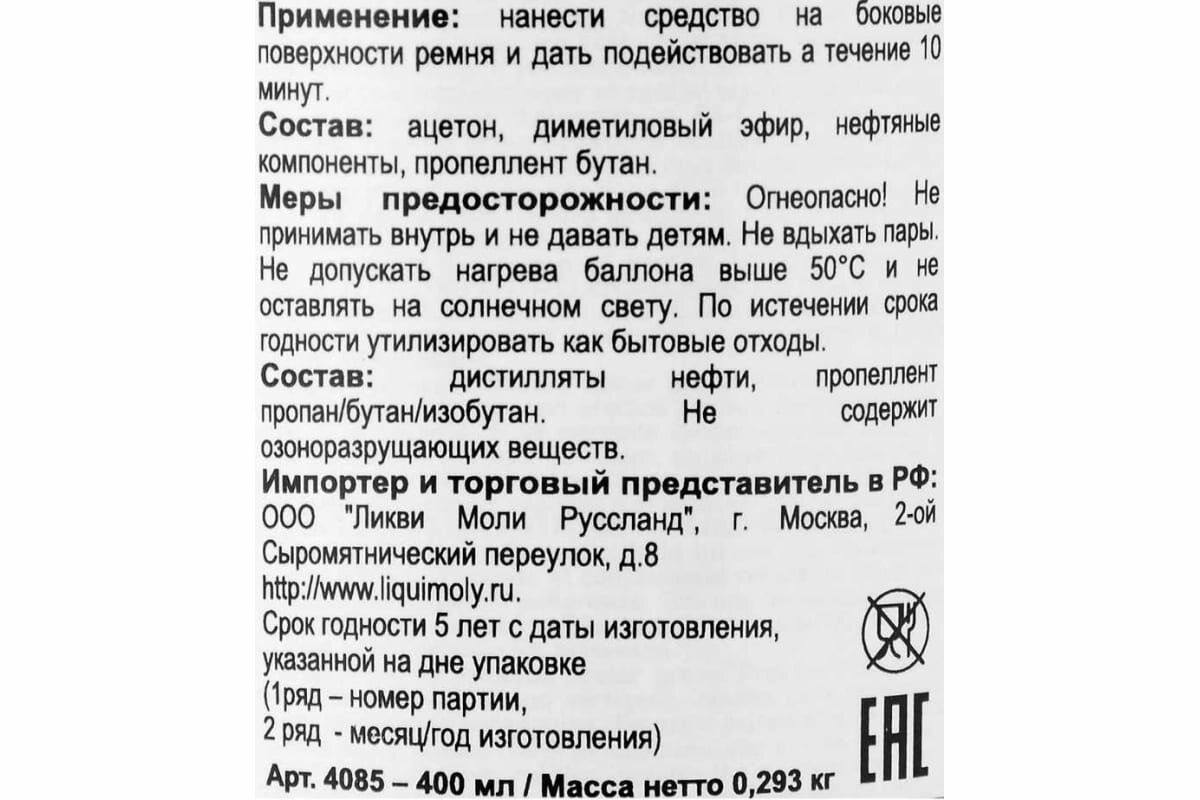 Купить LIQUI MOLY 4085 Спрей для клинового ремня (400ml)