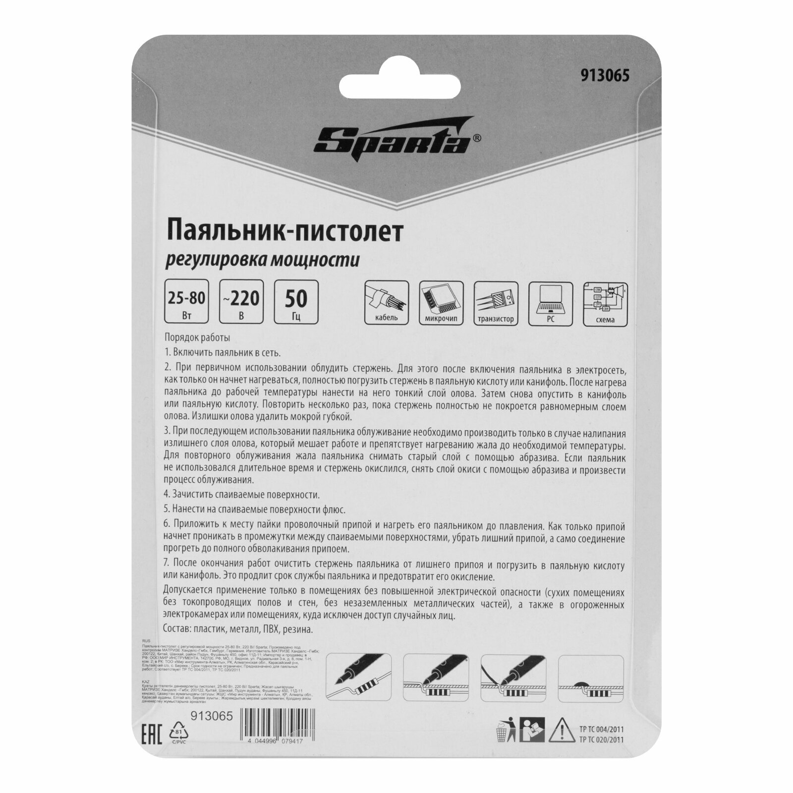 SPARTA 913065 Паяльник-пистолет с регулировкой мощности 25-80 Вт, 220 В Sparta 913065 SPARTA 913065