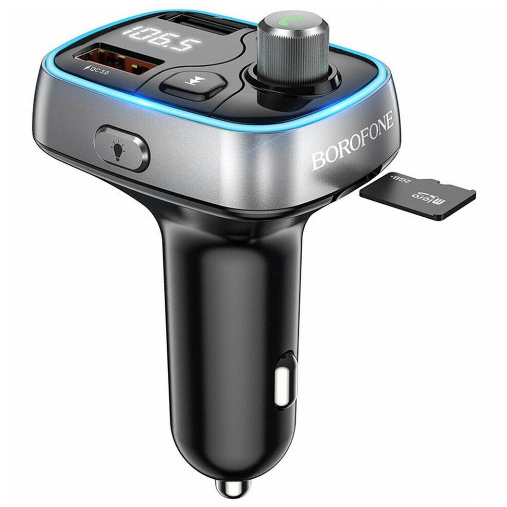 Автомобильное зарядное устройство (АЗУ) Borofone BC32 Sunlight (2 USB / MicroSD / FM-трансмиттер / Bluetooth) 2.4 А, черный интересное: