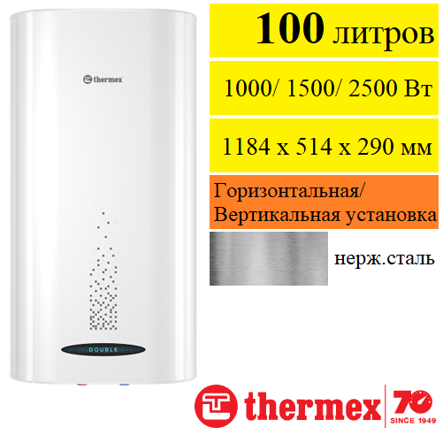 Водонагреватель электрический накопительный Thermex DOUBLE - 100 л. (два внутренних бака)