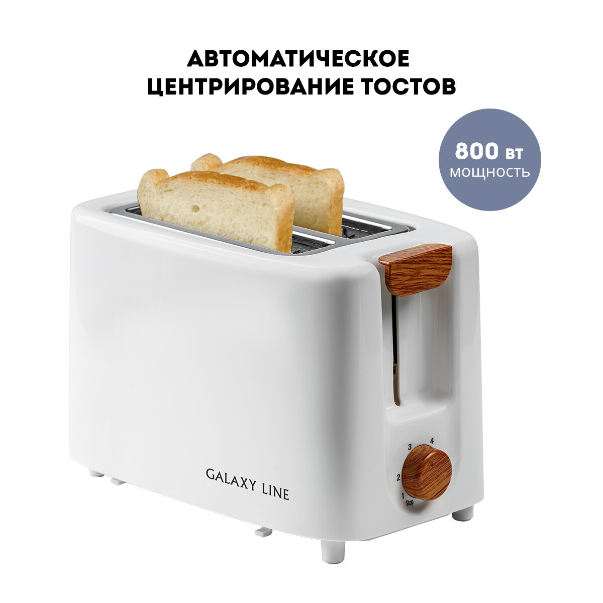 Тостер Galaxy GL 2909 (800Вт, белый, автоматическое центрирование тостов)