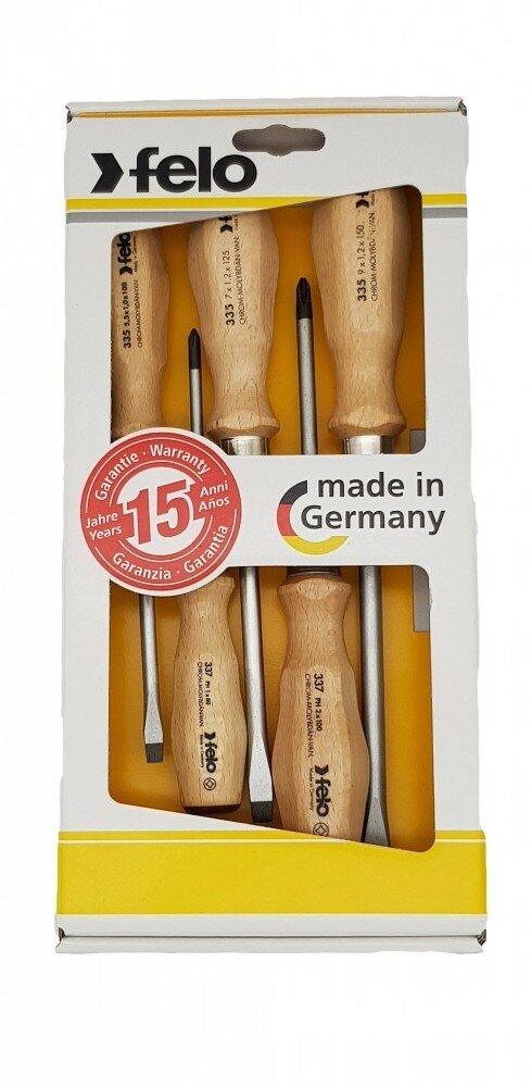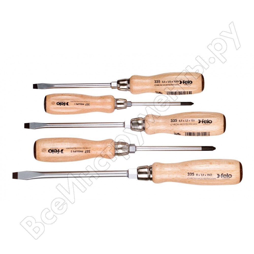 Набор отверток FELO 33595198, SL/PH с деревянной рукояткой, 5 шт, ударные