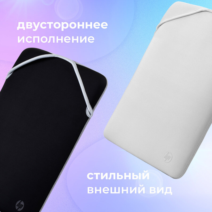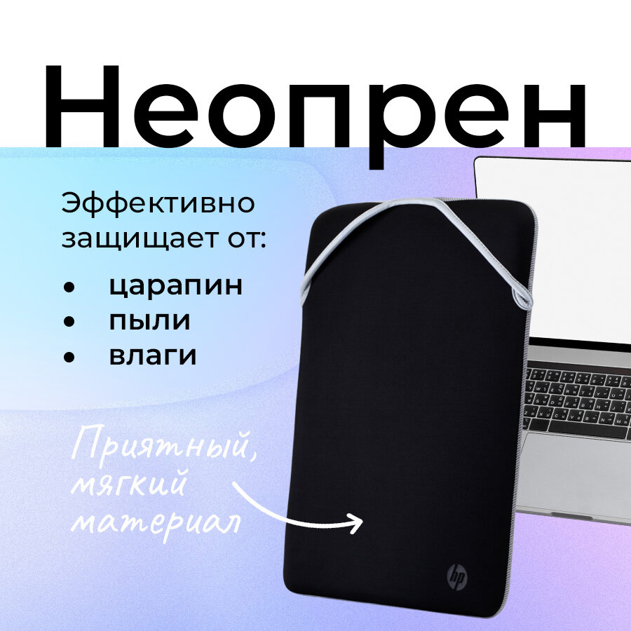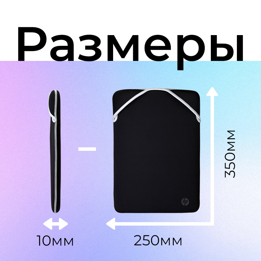 Чехол для ноутбука 14 дюймов HP Protective Reversible, размеры 360x269x10 мм, двусторонний, черный серебристый