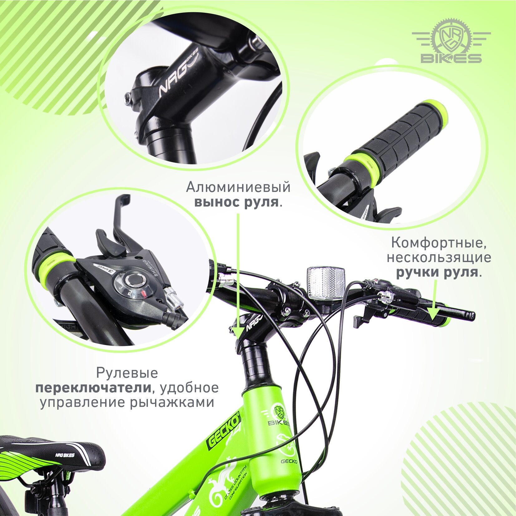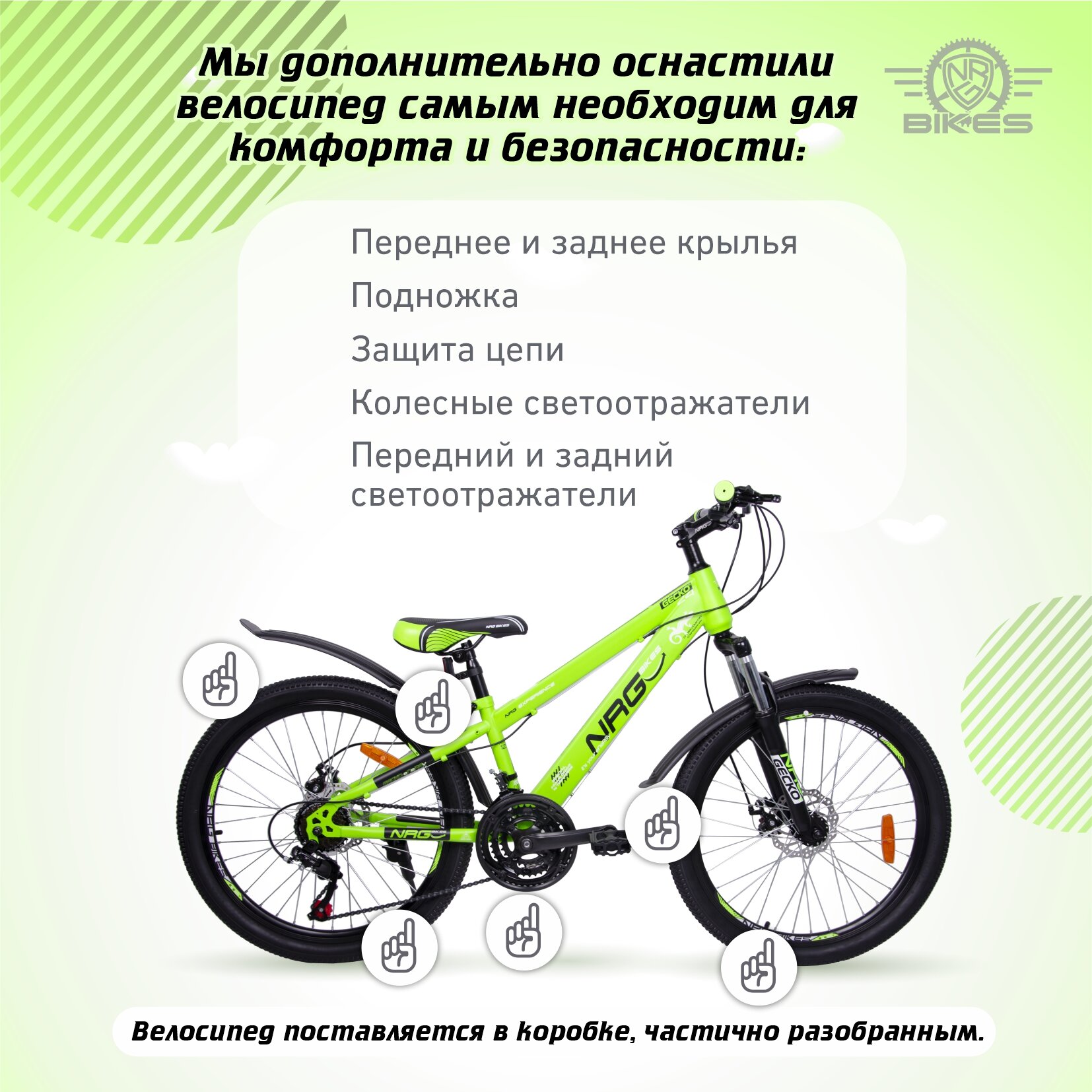 Горный Велосипед NRG Bikes GECKO 24''/12'' lime-black-white, 21 скорость, 2022 год
