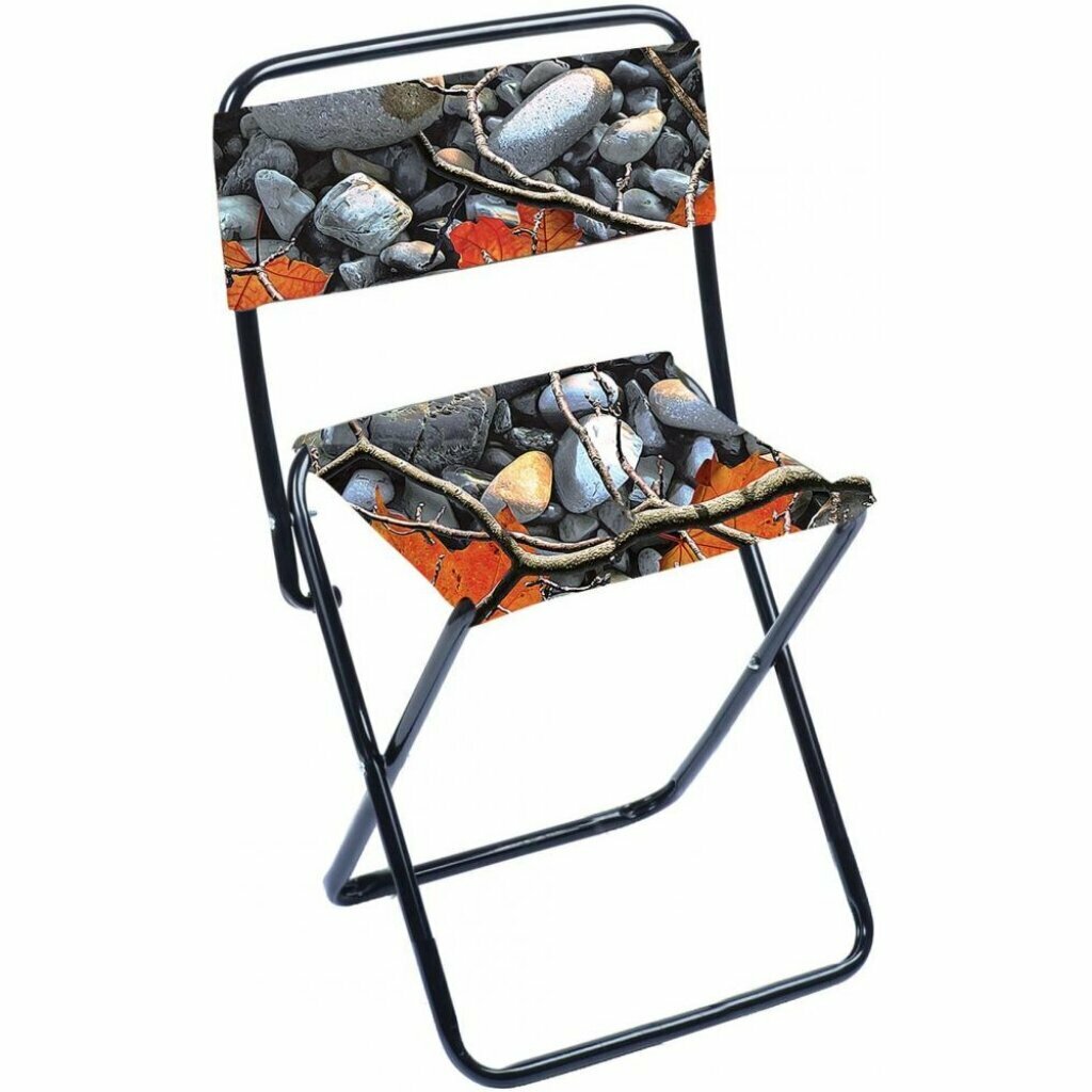 Стул походный складной 385x365x645 мм №2 со спинкой с камнями и кленов. листьями