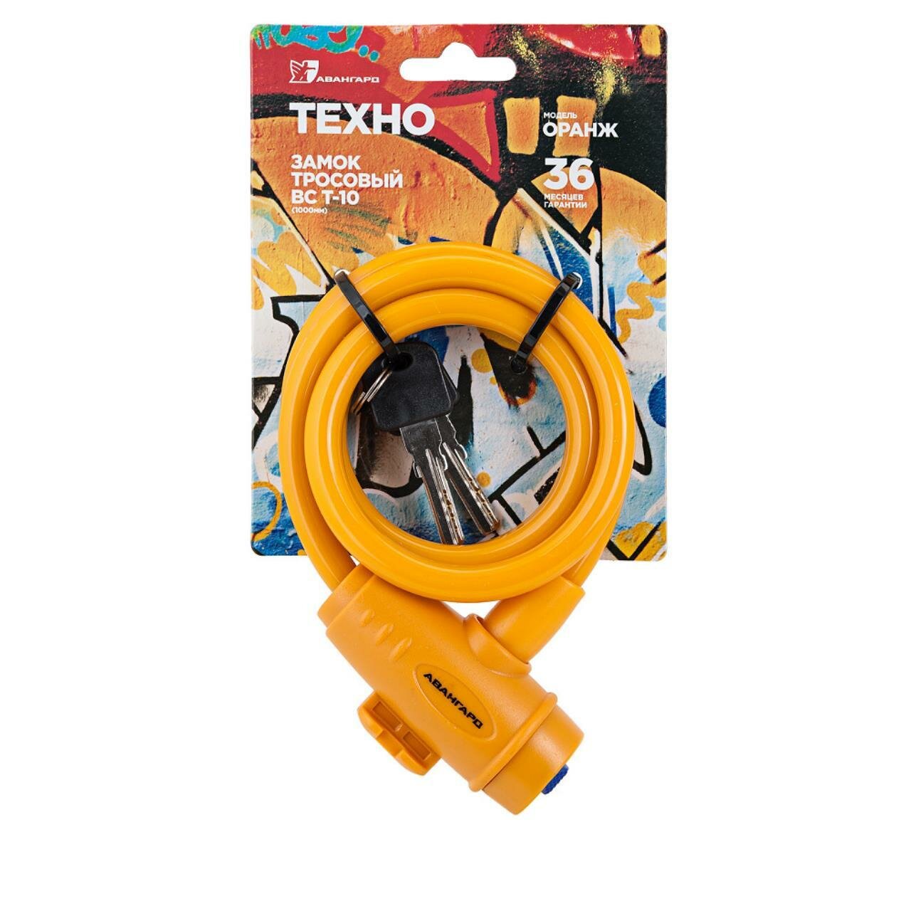 Авангард ВС-Т10 (1000 мм) техно оранж замок навесной с тросом (d=10мм) длина 1м (велосипедный) (арт. 508062)