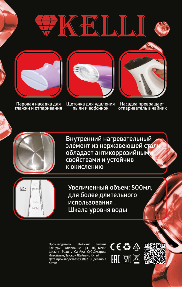 Отпариватель ручной Kelli 350 мл 2400 Вт