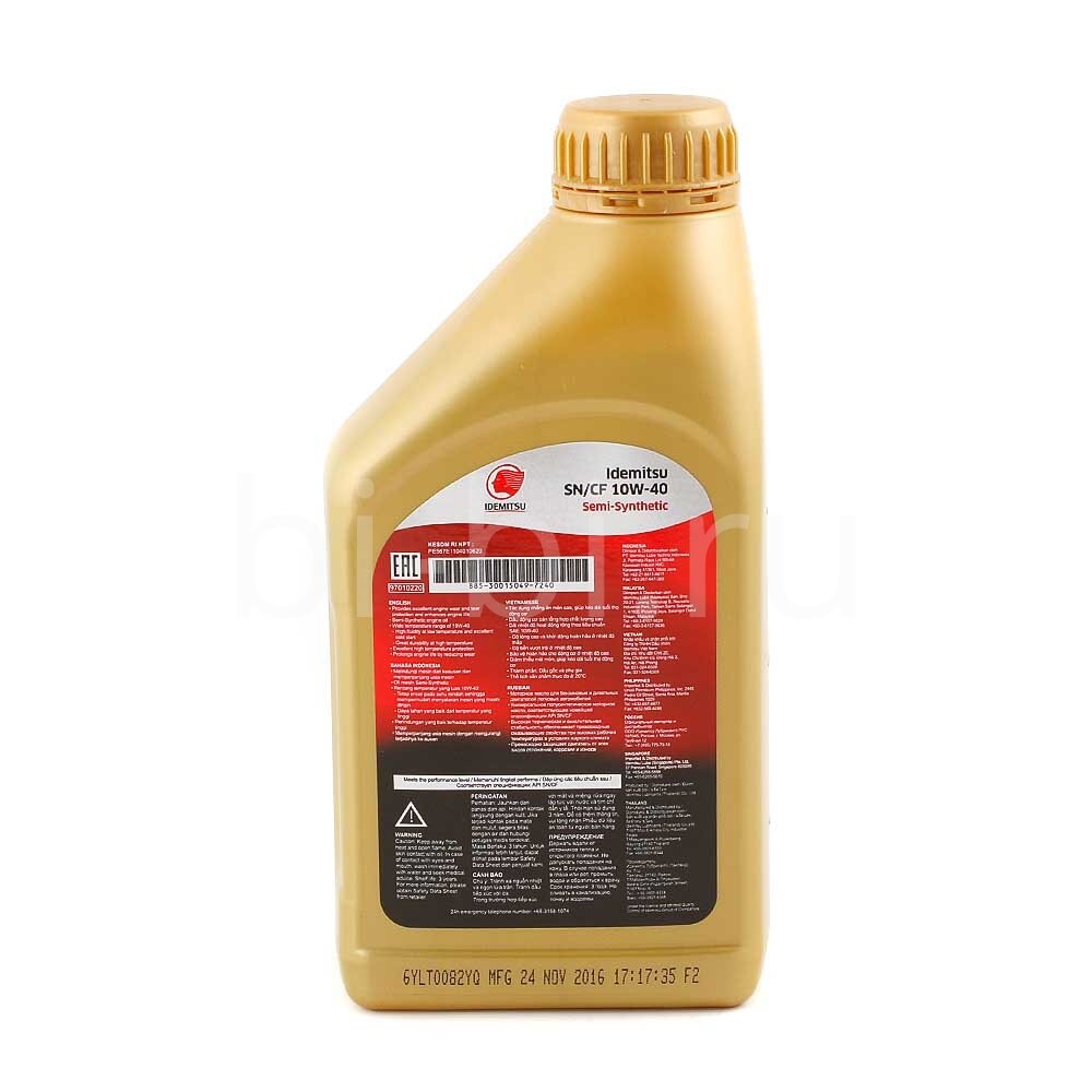 Масло моторное IDEMITSU 10w40 полусинтетическое, SN/CF, универсальное, 1л, арт. 30015049-724