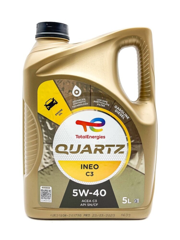 TOTALENERGIES 213790 Масло моторное синтетическое 5л - QUARTZ INEO C3 5W-40, ACEA C3, API SN/CF, MB 229.51, GM Dexos 2, Porsche A40, VW 505.00/505.01, FIAT 9.55535-S2, OV 040 1547 - D40