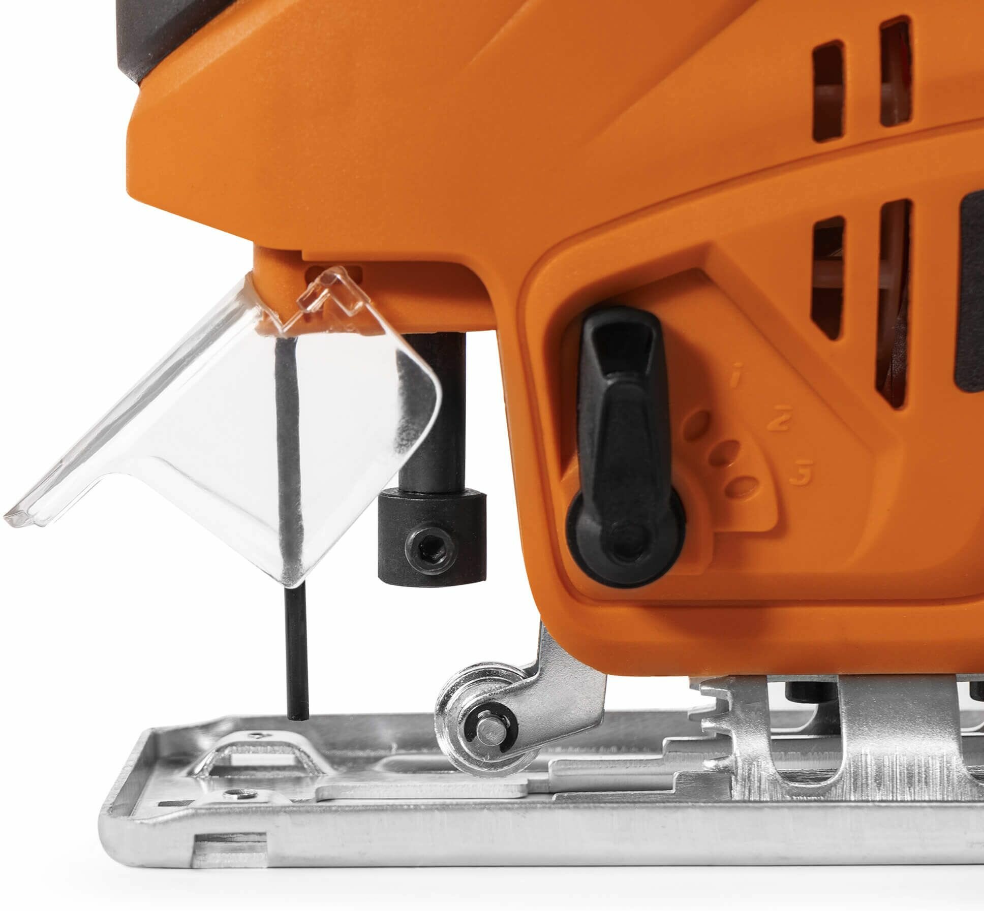 Пилка крепится на шестиграннике. Есть регулировка хода пилки. |