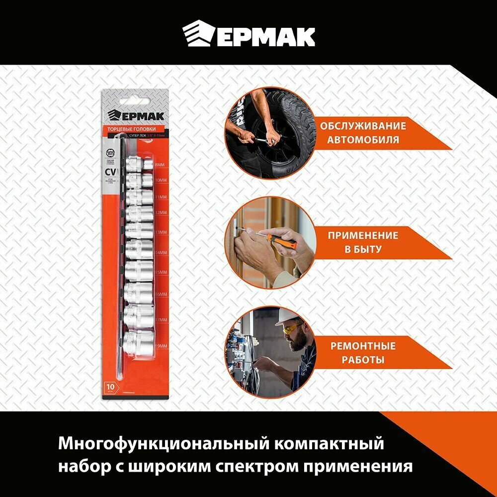 Набор торцевых головок "Ермак" 10пред. 3/8