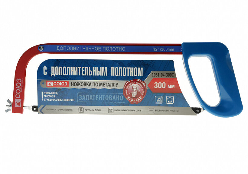 Ножовка по металлу с дополнительным полотном, 300мм, серия Кулибин, СОЮЗ