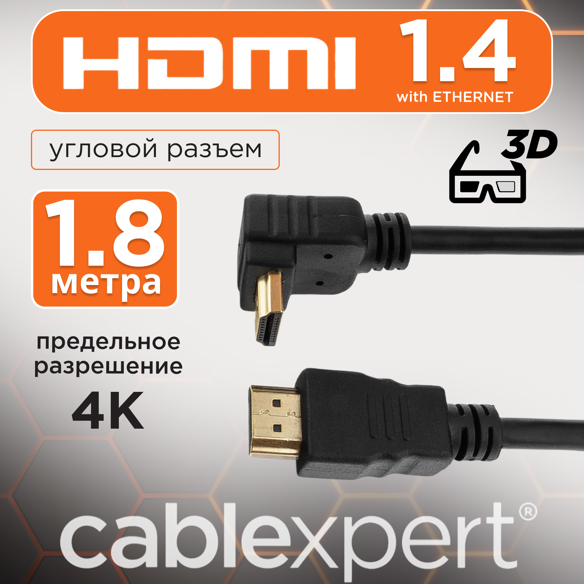 Кабель Cablexpert HDMI v1.4, 19M/19M, 1.8м, угловой разъем, черный CC-HDMI490-6