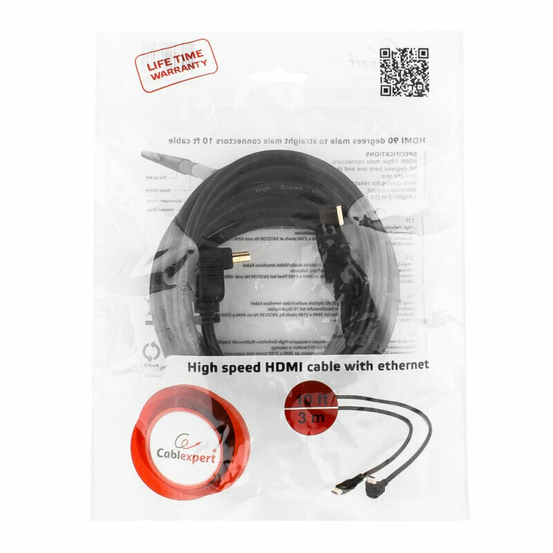 Кабель HDMI Cablexpert CC-HDMI490-10 19М/19М V1.4 угловой, чёрный - 3 метра