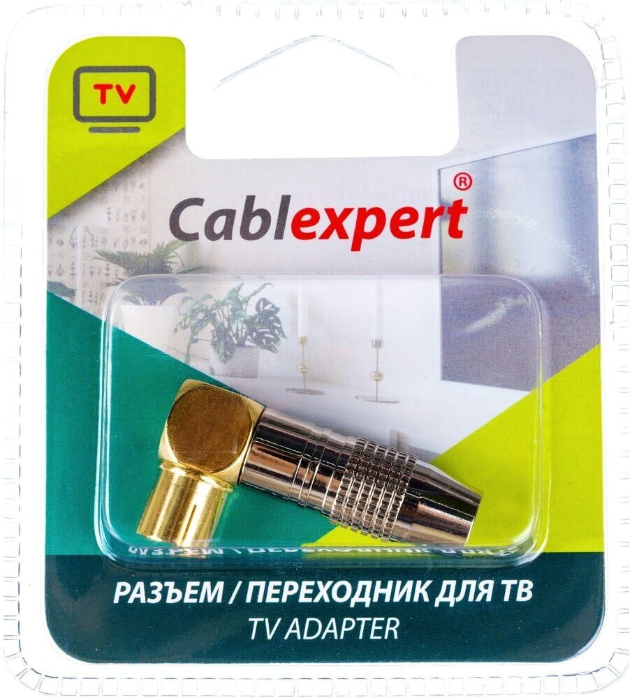 Разъем CABLEXPERT TVPL-08 ,TV (мама) позолоченный, латунь OD8.5, 90 градусов, блистер
