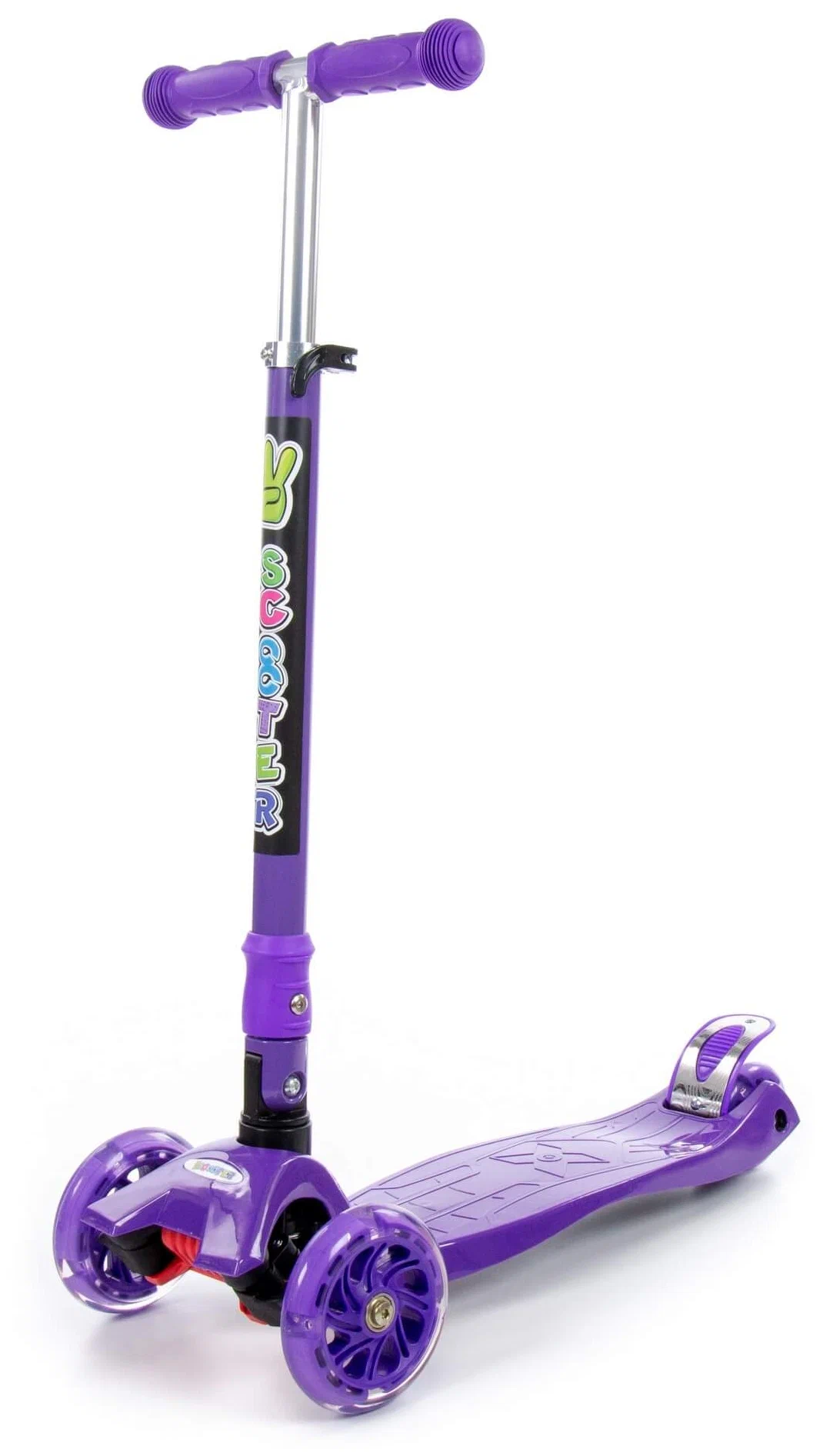 Детский самокат (со складной ручкой) (фиолетовый) (в коробке)