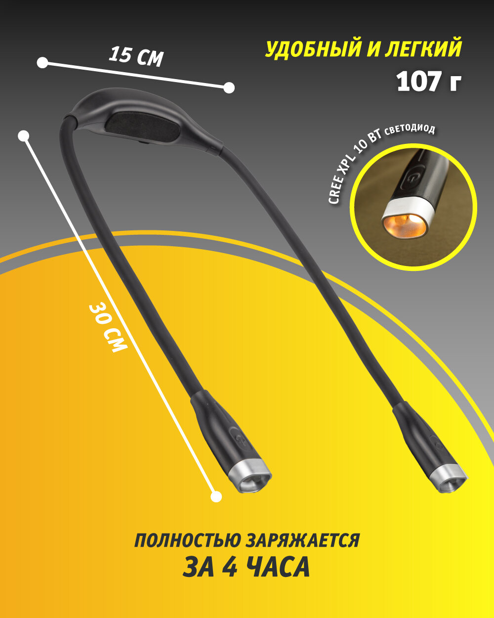 Фонарь NPT-N01 на шею 4LED аккум 3,7В 850мАч 36231